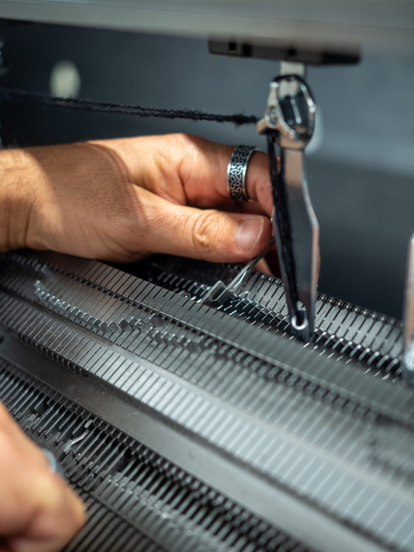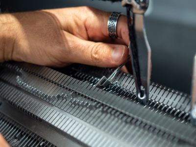 Dopo la fase di tessitura, lavoriamo i pannelli a maglia.
